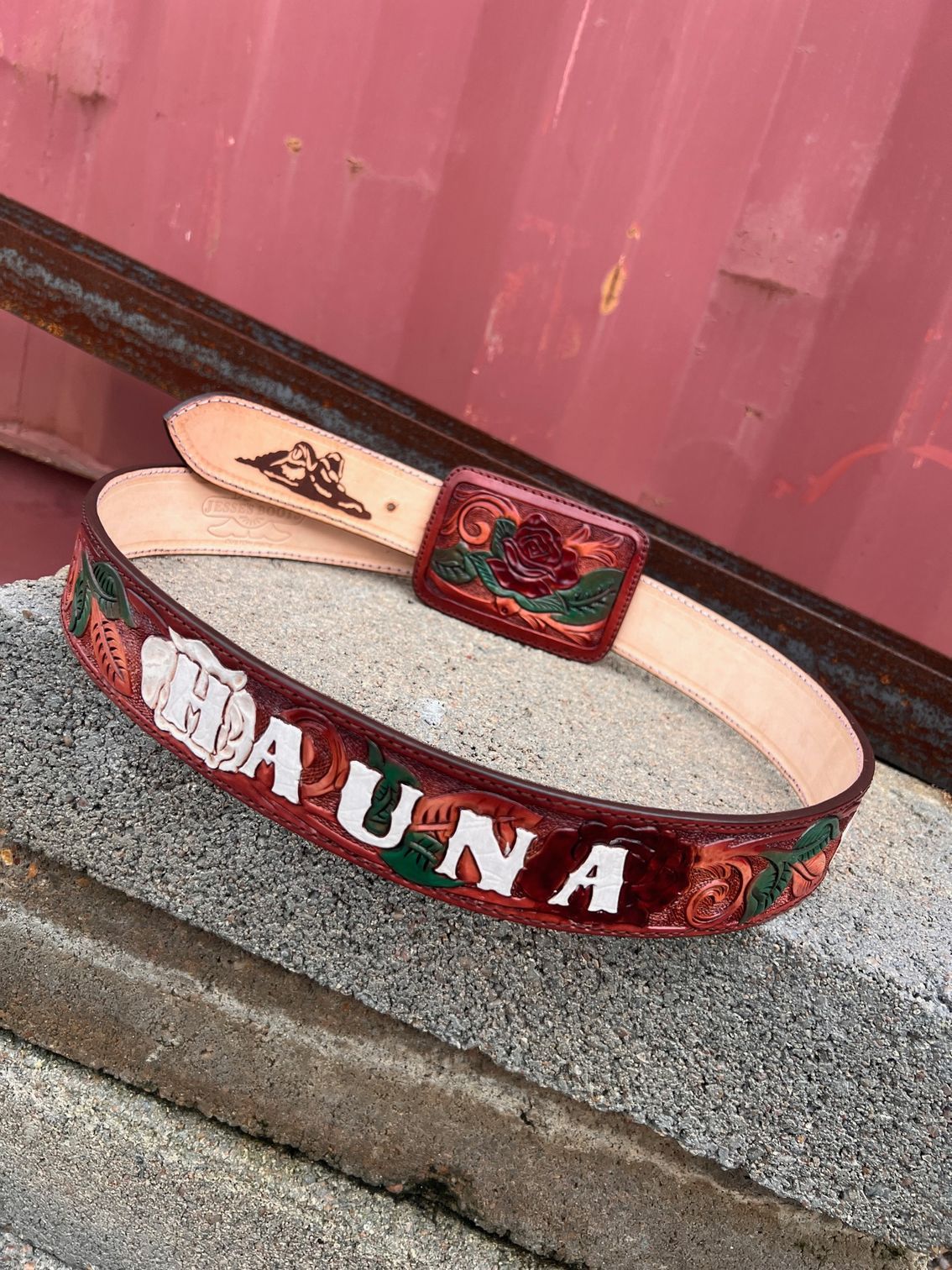 Make a style statement by designing your own look. Here are a few samples of our recent custom belts!